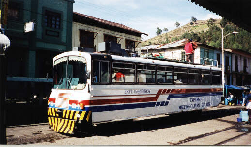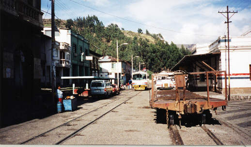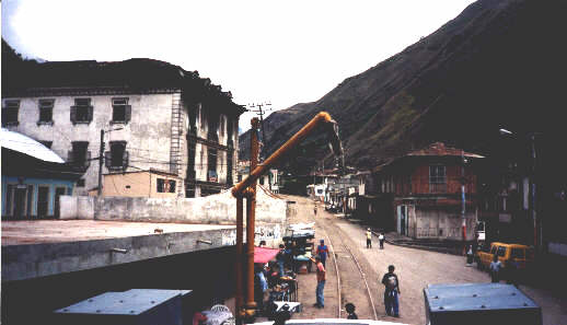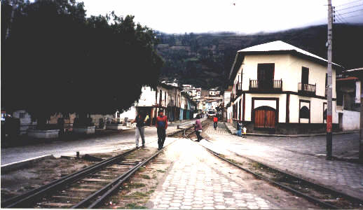 | The railway runs straight down the main street in Ecuadorian towns. | |
